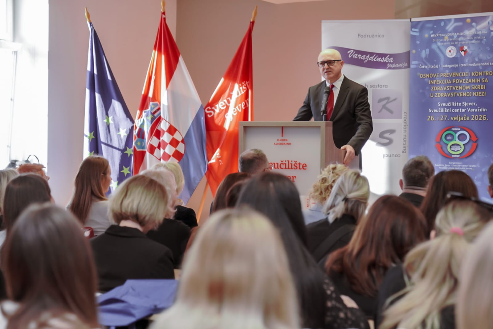 „U vremenu kada su zdravstveni sustavi suočeni s brojnim izazovima, znanje, standardizirani postupci i kontinuirana edukacija postaju ključni stupovi otpornosti i izvrsnosti zdravstvenog sustava. Kao sveučilište koje kroz svoje studijske programe iz biomedicine i zdravstva obrazuje stručnjake u području zdravstvene njege, svjesni smo svoje odgovornosti da osiguramo obrazovanje koje je suvremeno, primjenjivo i utemeljeno na dokazima. Ovaj tečaj rezultat je stručnog rada i suradnje naših nastavnika i partnera iz prakse, s ciljem da polaznicima ponudi konkretna znanja i alate koje mogu odmah primijeniti u svakodnevnom radu. Posebno želim istaknuti važnost cjeloživotnog učenja. Vaša odluka da sudjelujete na ovom tečaju pokazuje profesionalnu zrelost i predanost unaprjeđenju kvalitete skrbi. Svaka nova kompetencija koju steknete doprinos je ne samo vašem osobnom profesionalnom razvoju, već i sigurnosti pacijenata te jačanju povjerenja u zdravstveni sustava“, naglasio je otvarajući tečaj rektor Sveučilišta Sjever prof. dr. sc. Damir Vusić.
