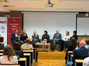 Prisutne je na početku panel rasprave pozdravio rektor Sveučilišta Sjever prof. dr. sc. Damir Vusić koji je naglasio: “Siguran sam da će ovaj priručnik biti od pomoći ne samo našim studentima, već i zdravstvenim djelatnicima koji se na dnevnoj bazi susreću s brojnim problemima i šumovima u komunikaciji. Uspješna komunikacija ovisi o puno parametara, a u zdravstvenom okruženju najvažniji su empatija, profesionalnost i stručnost. Mi na Sveučilištu Sjever imamo ulogu osigurati studentima iz područja biomedicine i zdravstva stjecanje novih znanja i kompetencija, kako u području njihove temeljne struke, tako i u segmentu unapređenja komunikacijskih vještina. Vjerujem da svi mi želimo biti dobri komunikatori i reagirati ispravno u okruženju i u raznim situacijama. Čestitam autorima na ovom djelu i u njihovom nastojanju da daju svoj doprinos u stvaranju boljih komunikacijskih kompetencija.“