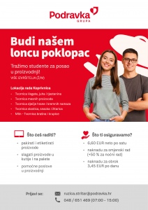 Ako te zanima studentski posao u Podravki i želiš dodatne informacije, javi se!